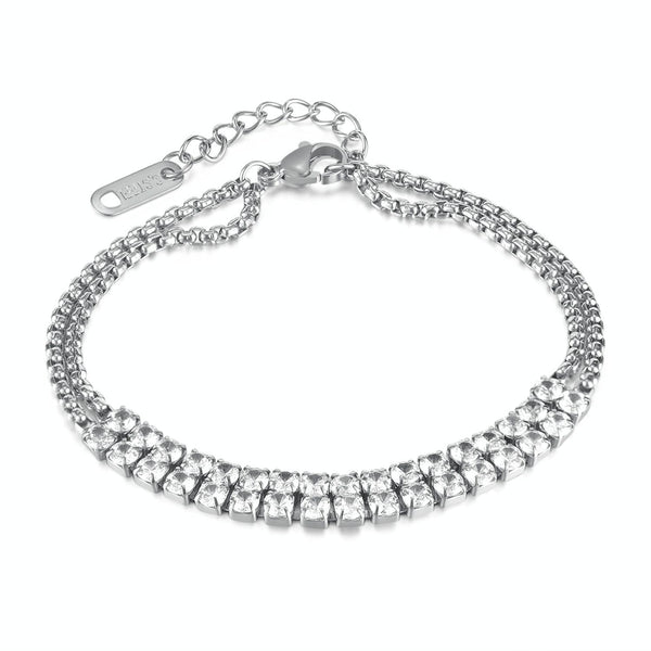 OPK GS1523 Stainless Steel Double Chain Double Row Diamonds Simple Bracelet, Color: Steel Color