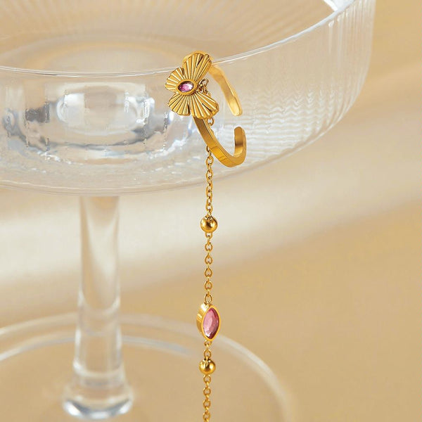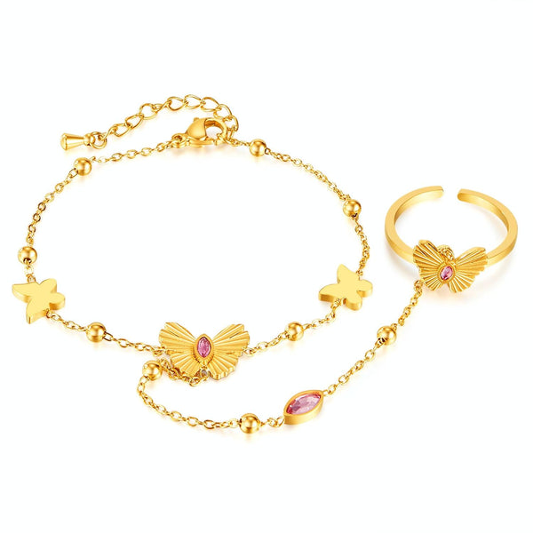 OPK GS1553 2 In 1 Stainless Steel Butterfly Bracelet Opening Ring Integrated