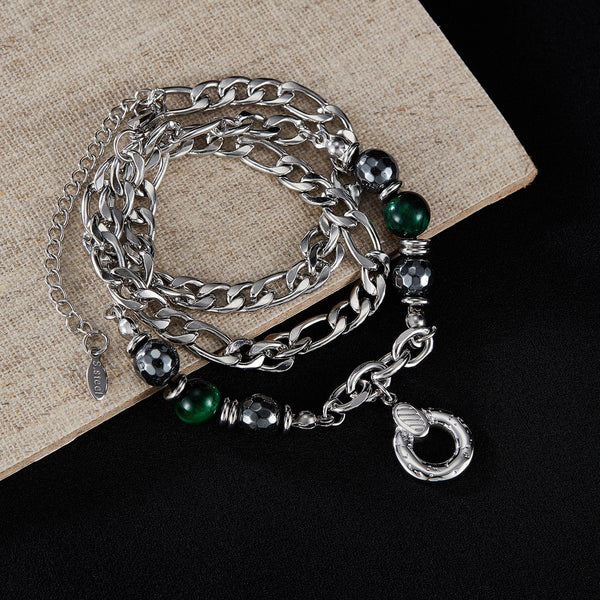 OPK GX2413 Personalized Hip Hop Geometric Pendant Stainless Steel Chain Spliced Tiger Eye Stone Necklace