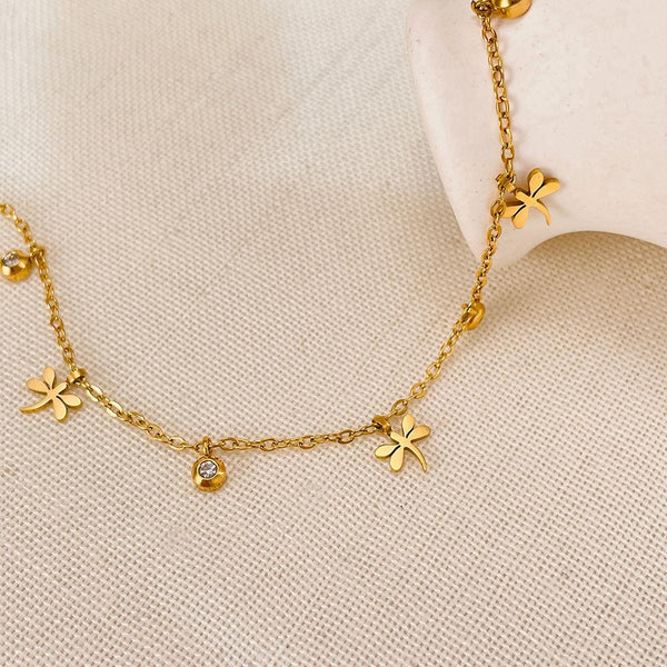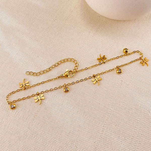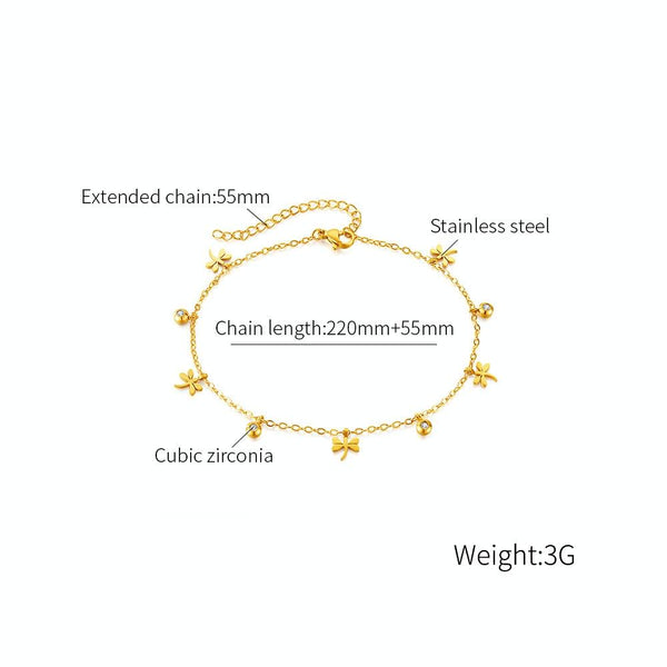 OPK GZ189 Stainless Steel Dragonfly Pendant Anklets(Gold)