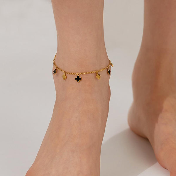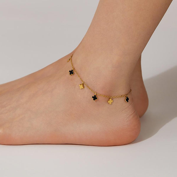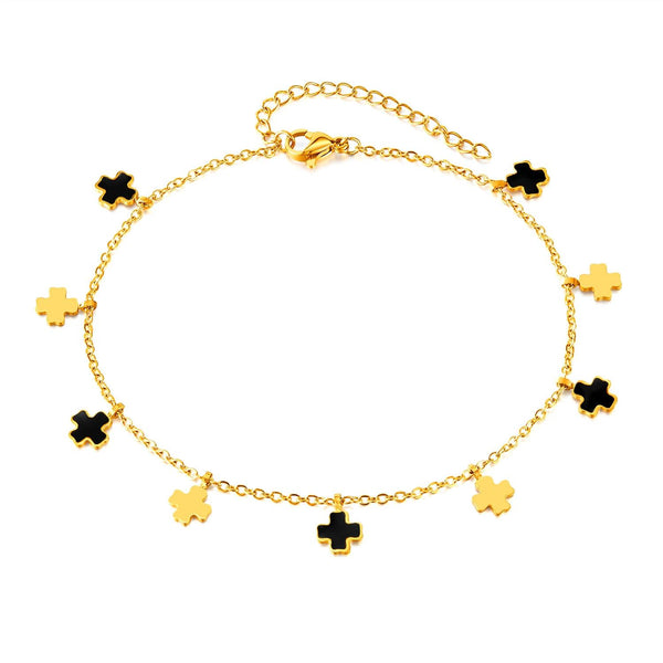 OPK GZ197 Simple Geometric Cross Stainless Steel Anklets(Gold)