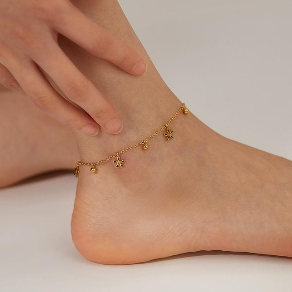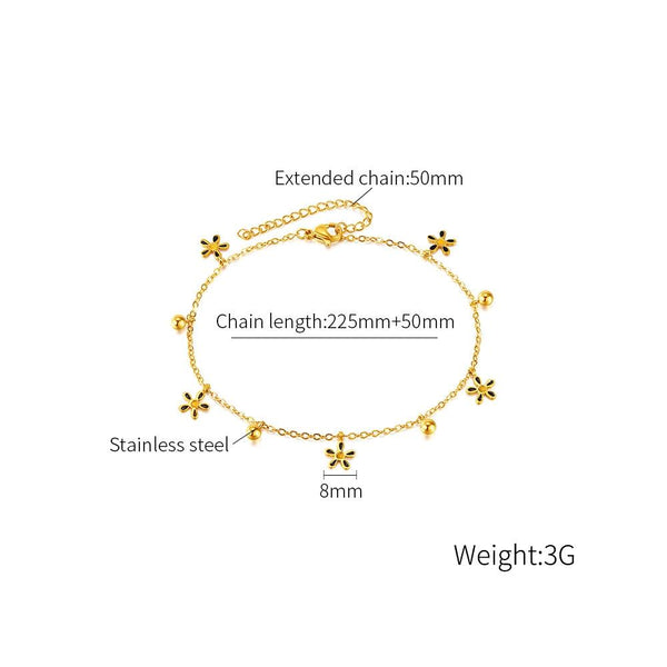 OPK GZ199 Stainless Steel Flower Beads Anklets(Gold)