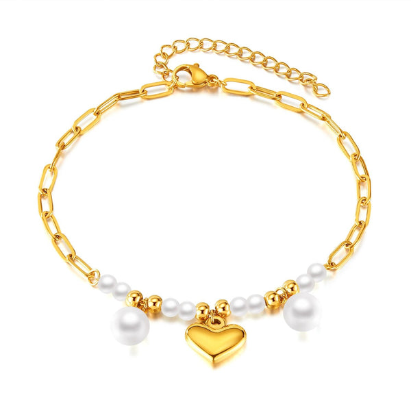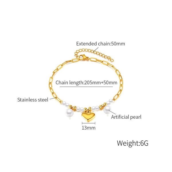 OPK GZ202 Stainless Steel Love Pearl Anklets(Gold)