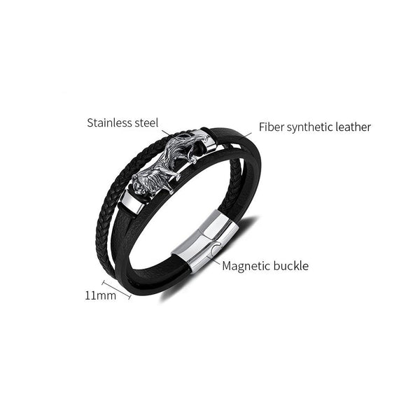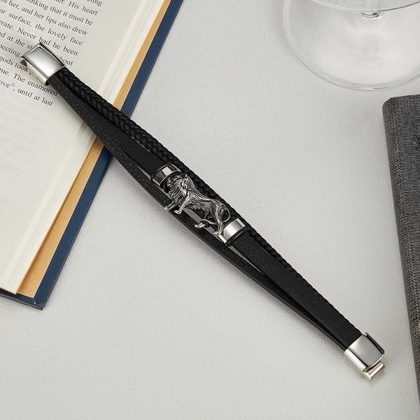 OPK PH1588 Personalized Retro Stainless Steel Lion Accessory Multi-Layer Braided Leather Bracelet