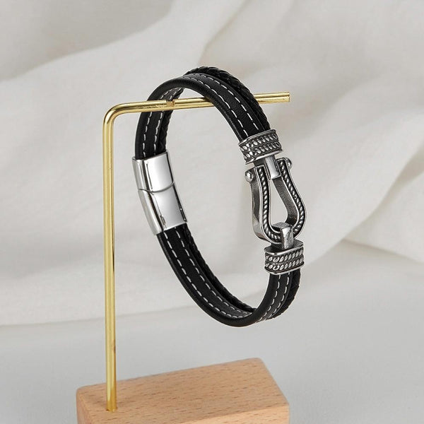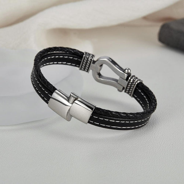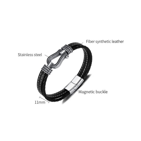 OPK PH1593 Stainless Steel Horseshoe Buckle Accessories Double Braided Leather Bracelet