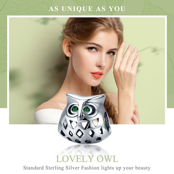 Owl S925 Sterling Silver Beads Inlaid With Gemstones And Hollow Beads