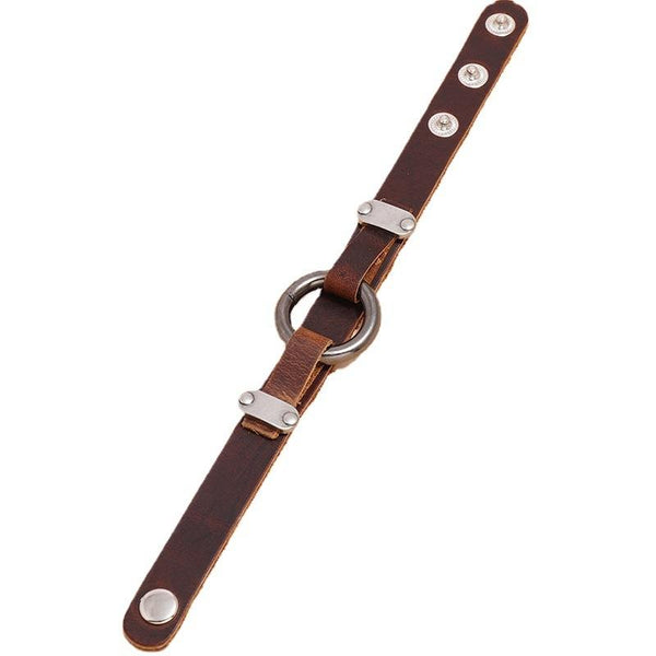 P01996 Personality Men Leather Simple Retro Circle Bracelet