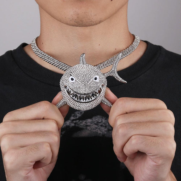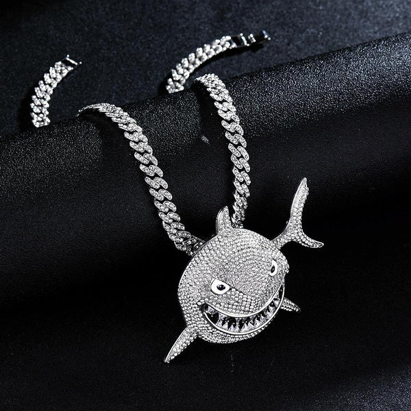 PDT139 Shark Pendant Hip Hop Vintage Necklace(Silver)