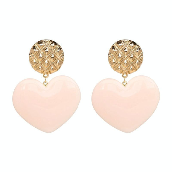Peach Heart Earrings Retro Series Acrylic Stud Earrings for Women(Light Skin Pink)