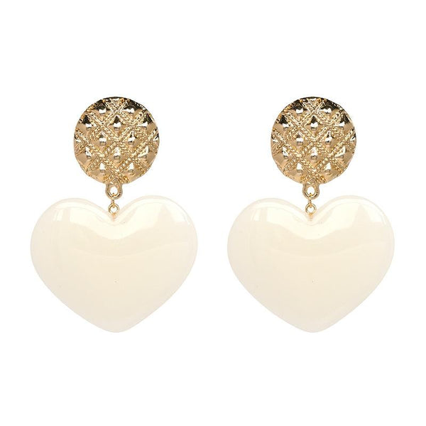 Peach Heart Earrings Retro Series Acrylic Stud Earrings for Women(White)