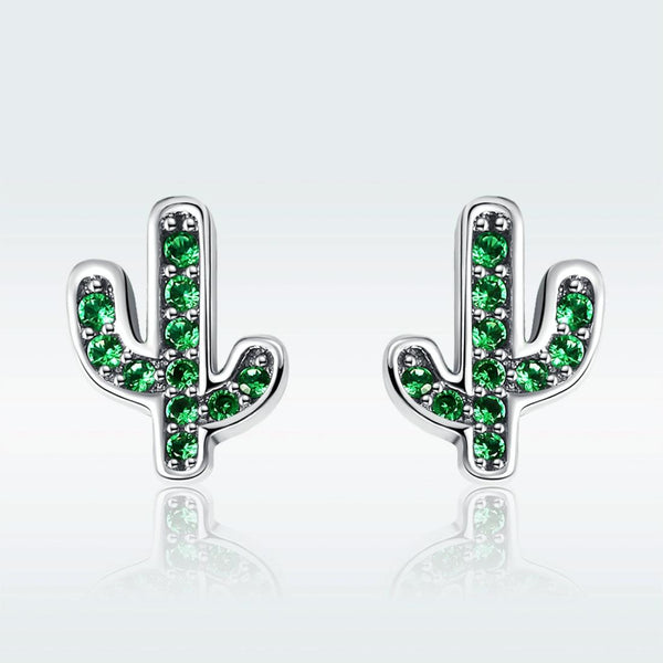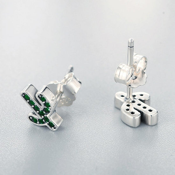 Personality Fresh Cactus S925 Sterling Silver Female Earrings