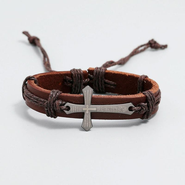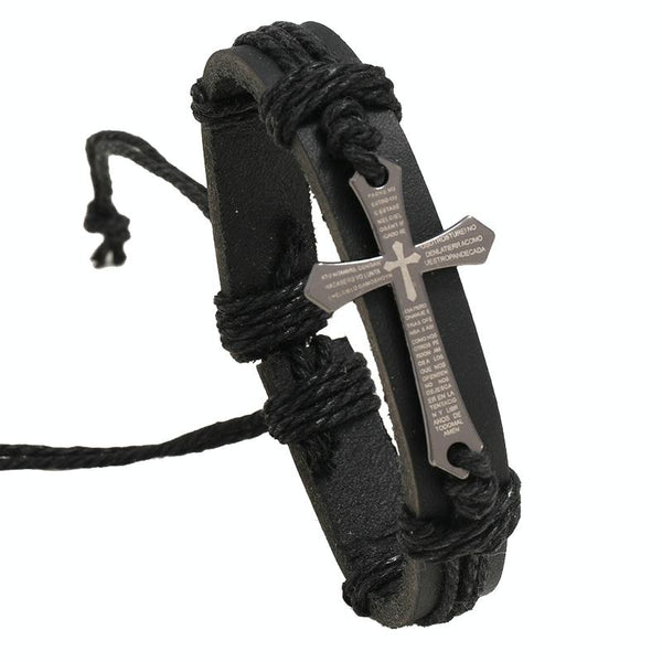 Personalized Hand-Woven Leather Bracelet Simple Pull-Out Adjustable Vintage Wristbands(Black)