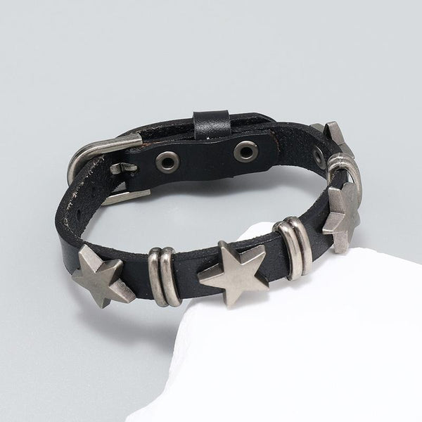 Personalized Street Punk Style Bracelet Pentagram Vintage Cowhide Bracelet(Dark Brown)