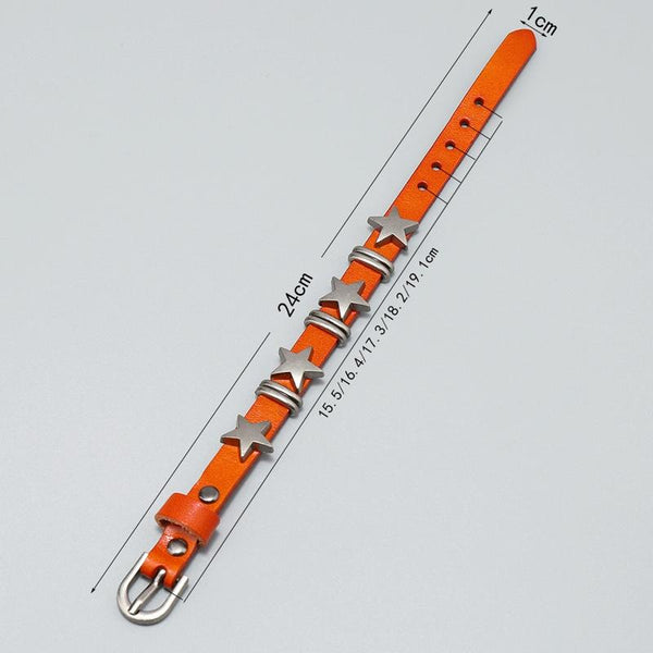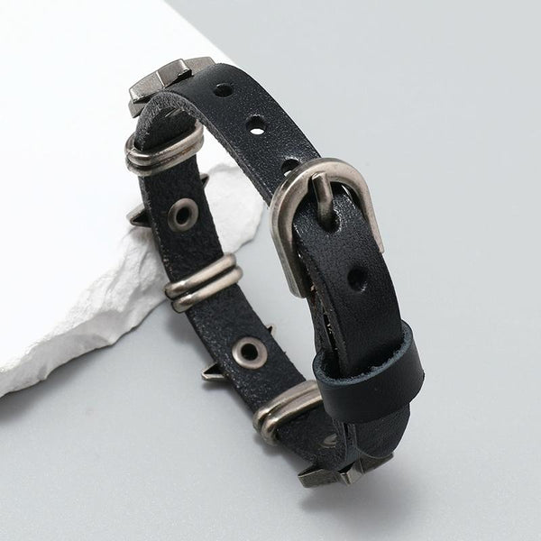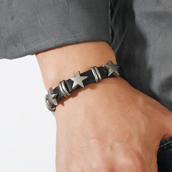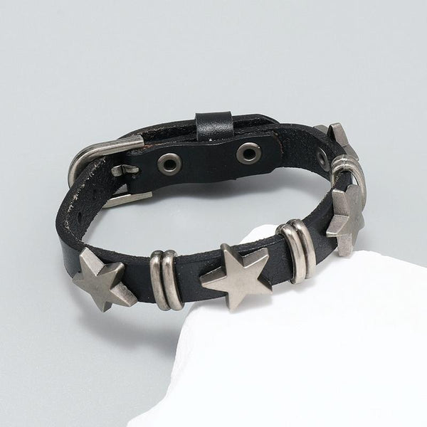 Personalized Street Punk Style Bracelet Pentagram Vintage Cowhide Bracelet(Dark Red)