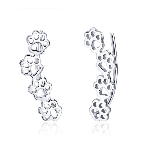 Pet Dog Paw Print S925 Sterling Silver Ladies Earrings