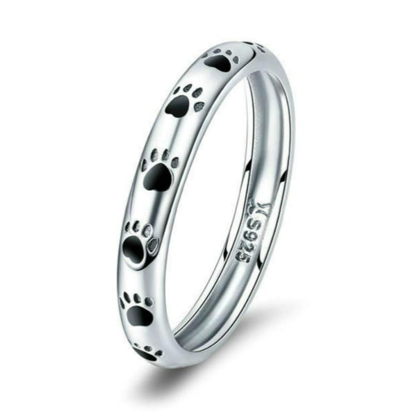 Pet Footprint Ring S925 Sterling Silver Oil Drop Ring, Size: 8