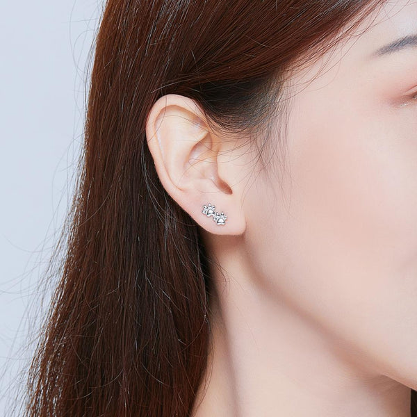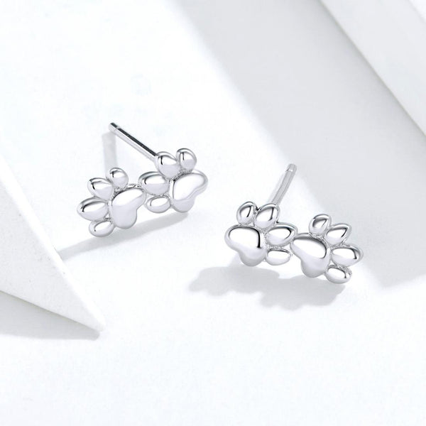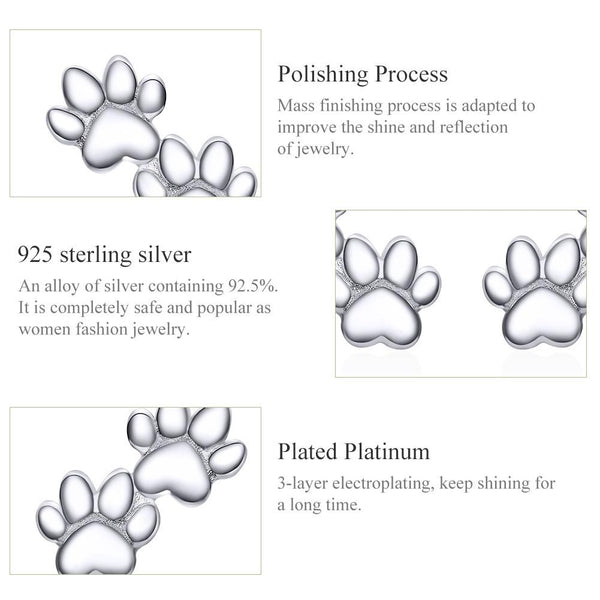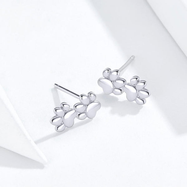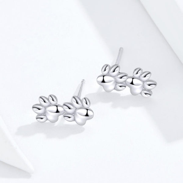 Pet Footprint Sterling Silver Stud Earrings Simple Platinum Plated Earrings