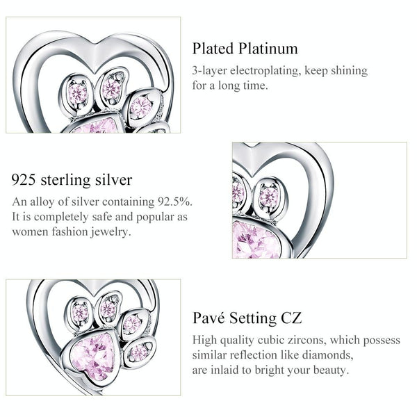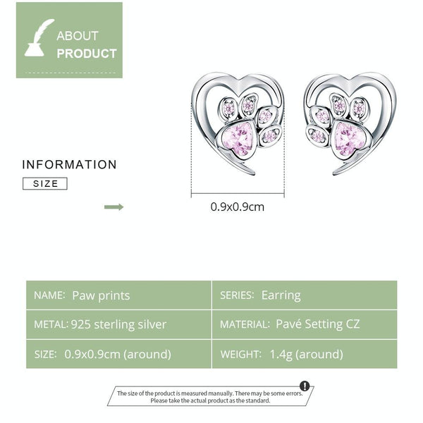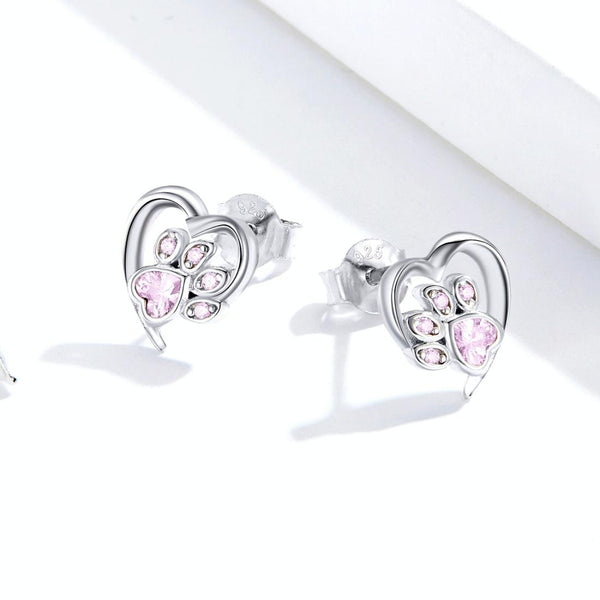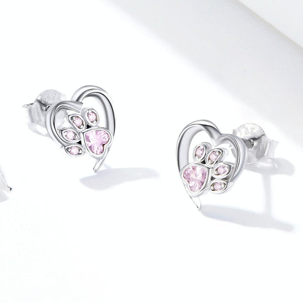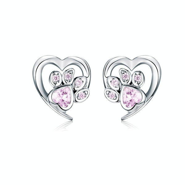 Pet Paw Print Earrings Platinum-plated Love Heart-shaped Girls Earrings, Color:Pink