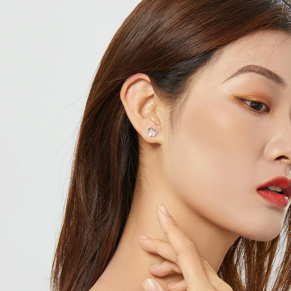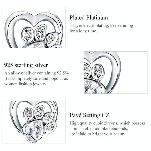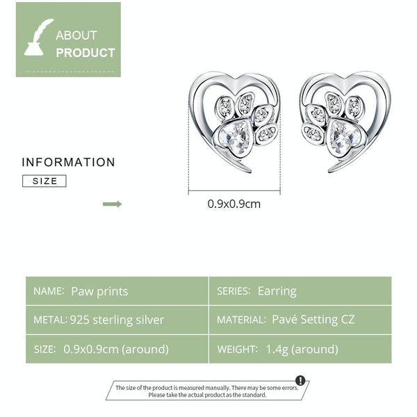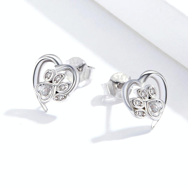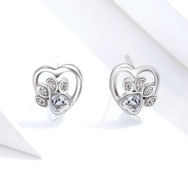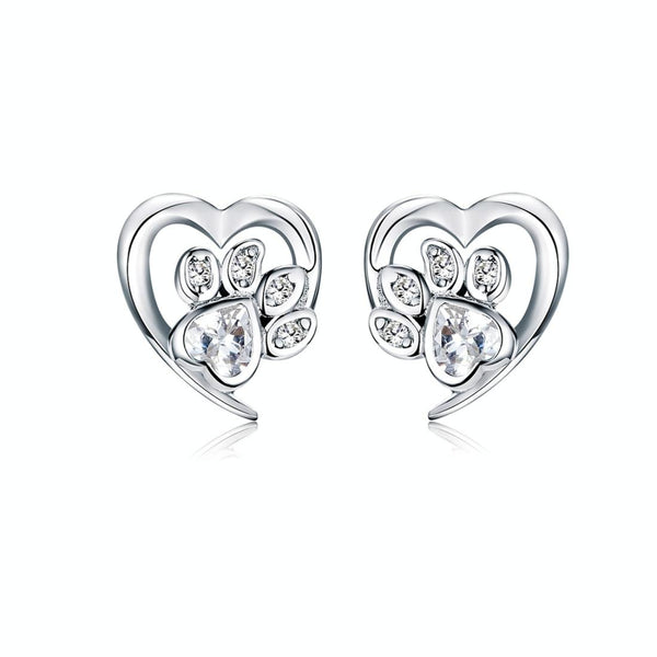 Pet Paw Print Earrings Platinum-plated Love Heart-shaped Girls Earrings, Color:White
