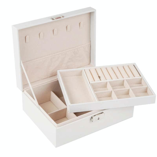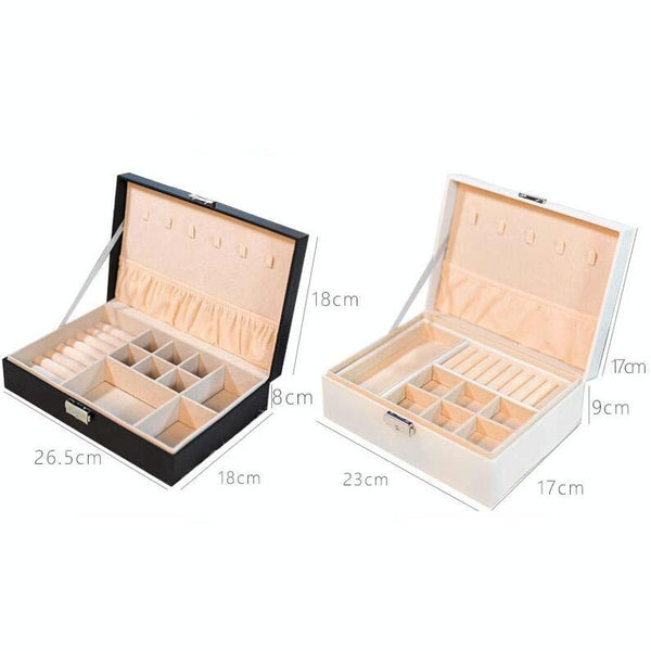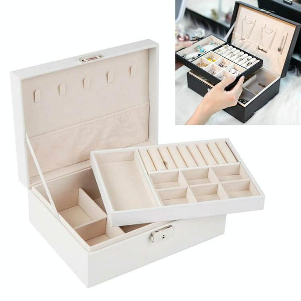 Portable Leather Jewelry Storage Box Necklace Ring Watch Storage Box, Style:Double Layer(White)