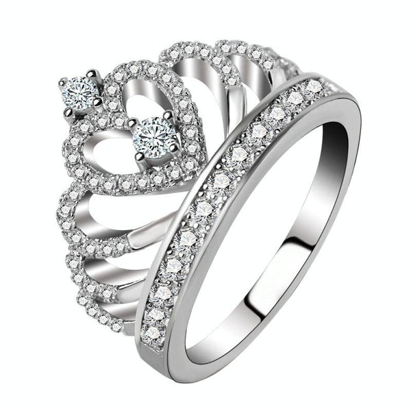 Princess Queen Crown-shaped Platinum Plated Zircon Ring, US Size: 9, Diameter: 18.9mm, Perimeter: 59.5mm(Silver)