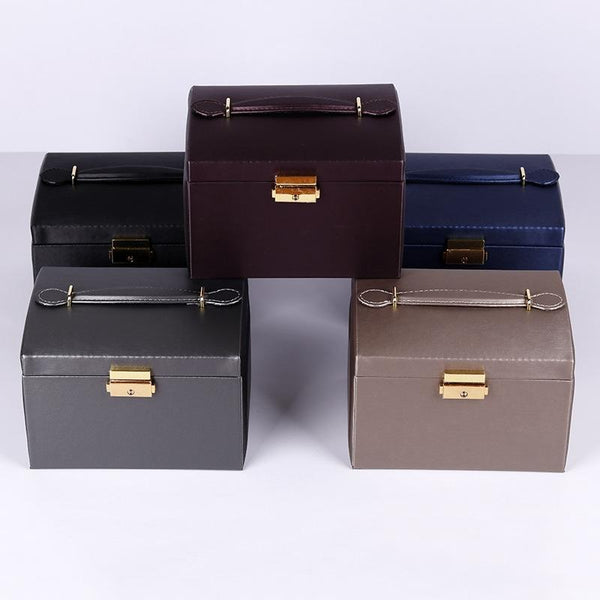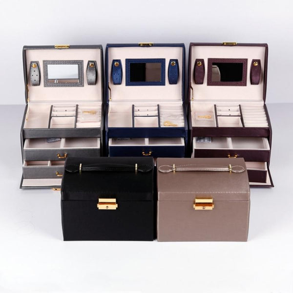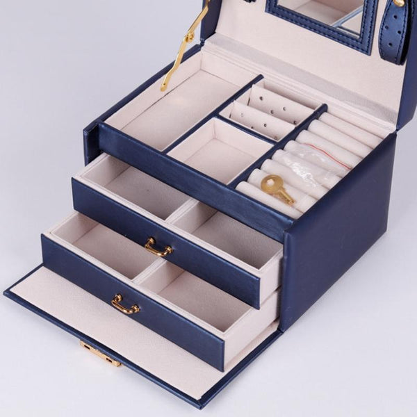 PU Leather Three-Layer Jewelry Box Necklace Storage Display Packaging Box With Handle( Dark Blue)