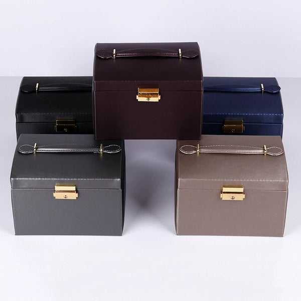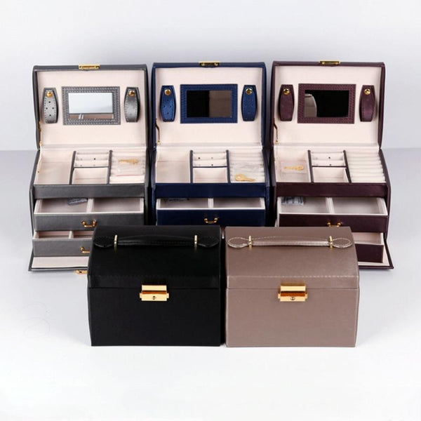 PU Leather Three-Layer Jewelry Box Necklace Storage Display Packaging Box With Handle(Dark Gray)