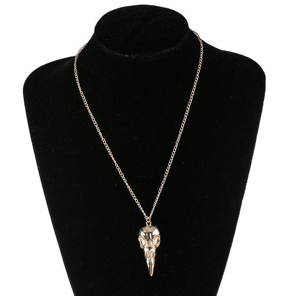 Punk 3D Metal Raven Skull Skeleton Pendant Necklace(Black)