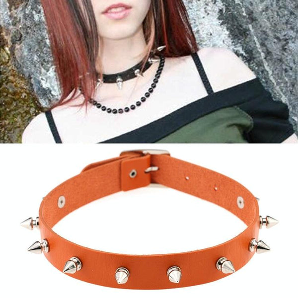 Punk Style Fashion Street Dance Rock Leather Rivet Necklace Collar, Random Color Delivery