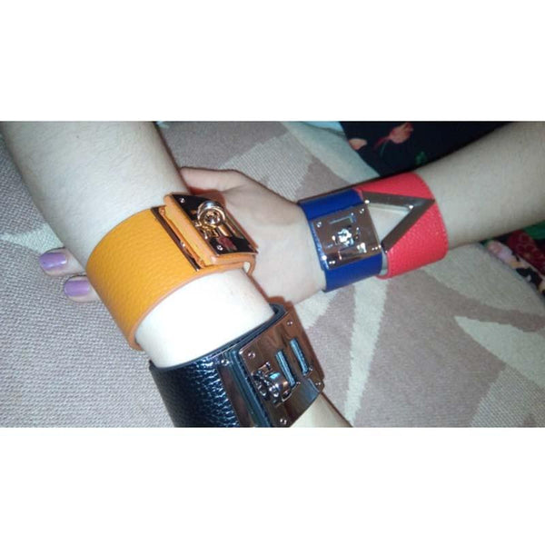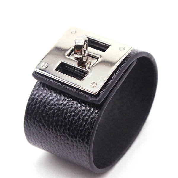 Punk Wide Leather Bracelets Bangles for Women Cuff Bracelet (Black)
