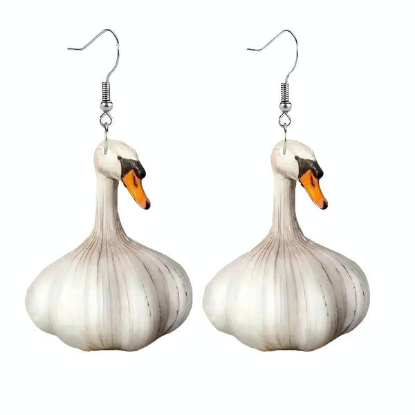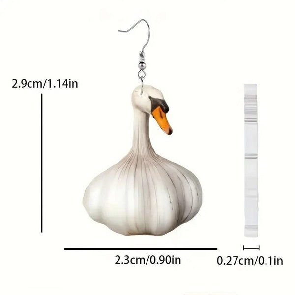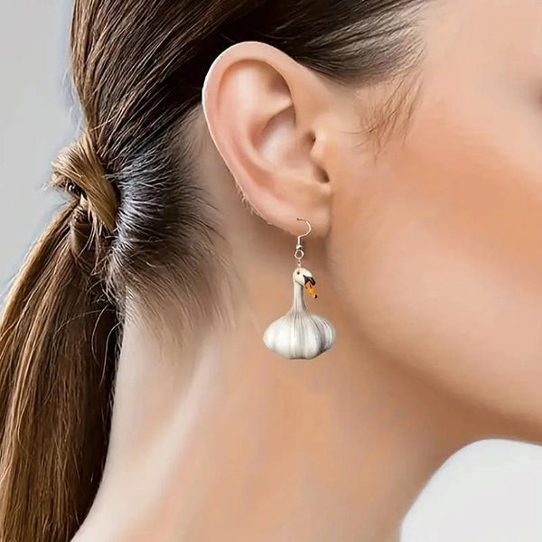 Quirky Garlic Duck Ear Studs Ladies Stylish Holiday Animal Earrings, Style: Single Sided Pattern