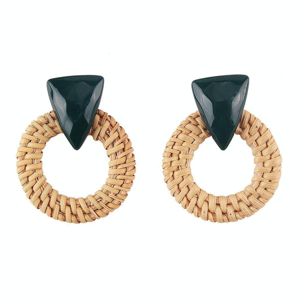 Rattan Wooden Vintage Handmade Dangle Earrings(Green)