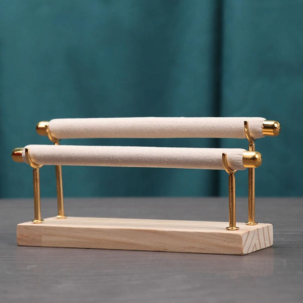 Removable Solid Wooden Base Ring Display Metal Stand Sponge Bar Ring Storage Rack, Style: Two Layers Beige