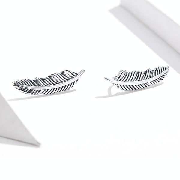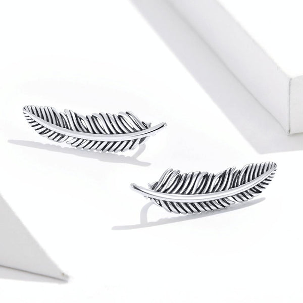 Retro Feather Earrings Sterling Silver Girls Earrings