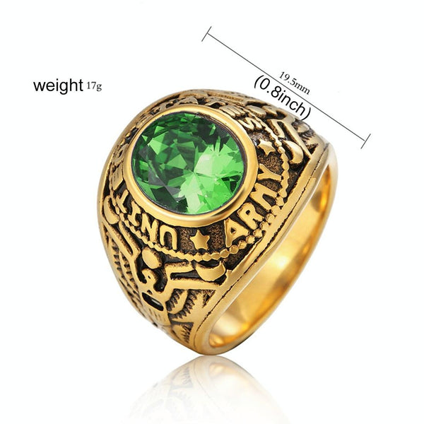Retro Round Gemstone Carved Soldier Army Military Titanium Steel Ring for Men, US Size: 7, Diameter: 17.4mm, Perimeter: 55mm(Green)