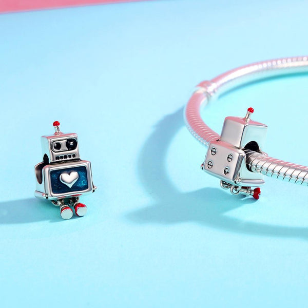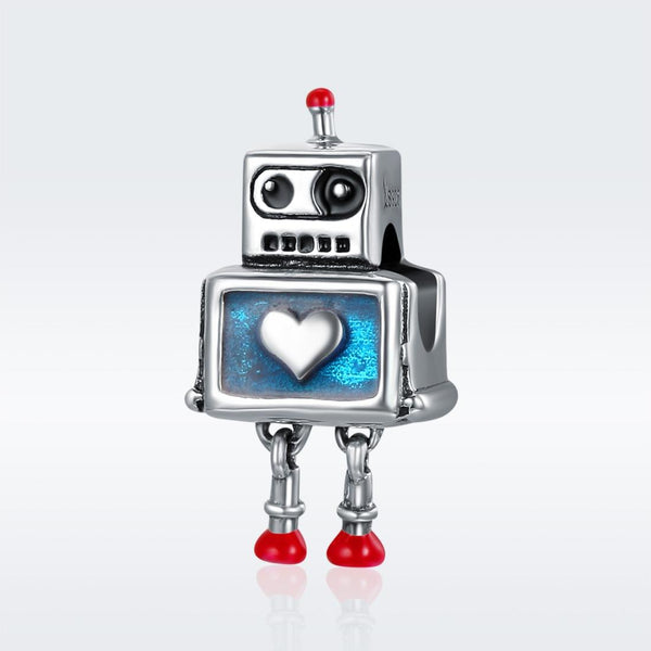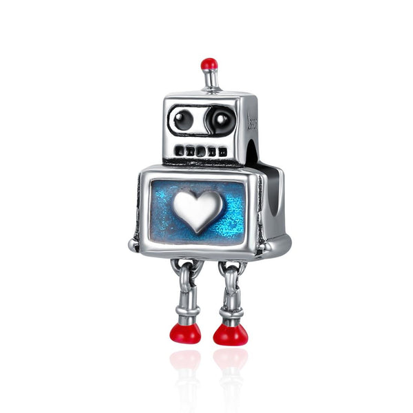 Retro Style S925 Sterling Silver Robot Charm DIY Beaded