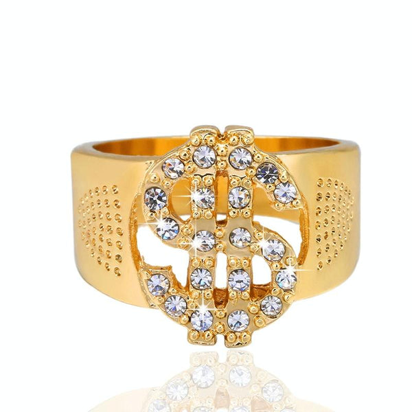 Rock Bling Gold US Dollar Sign Signets Rings for Men Jewelry, Ring Size:7(Gold)