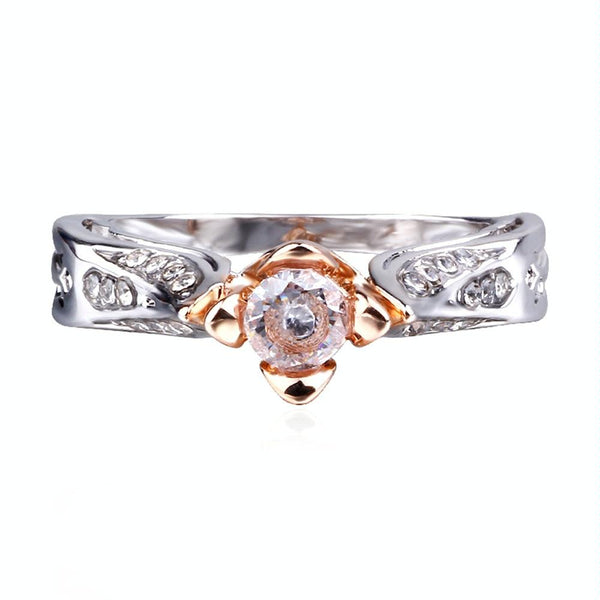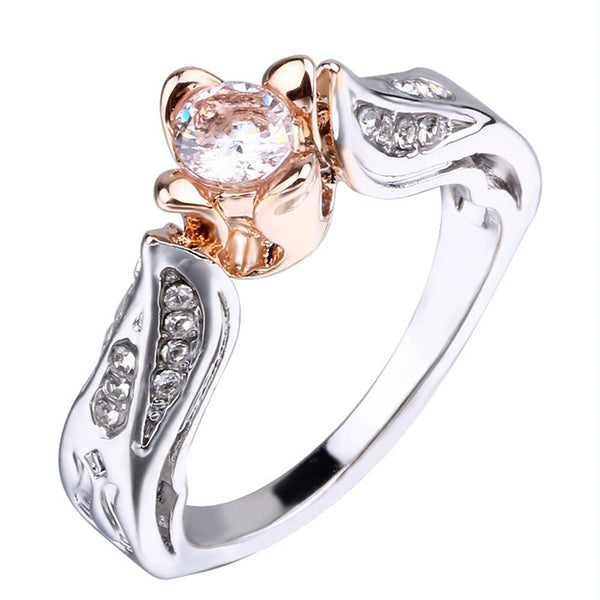 Rose Flower with Diamond Wedding Ring for Women, Ring size:8