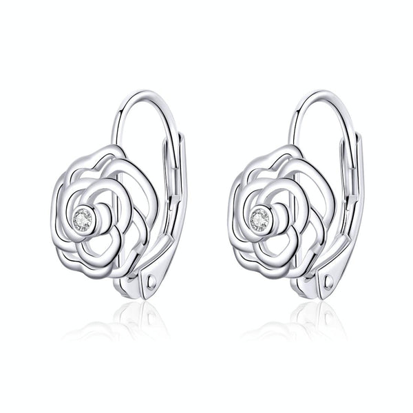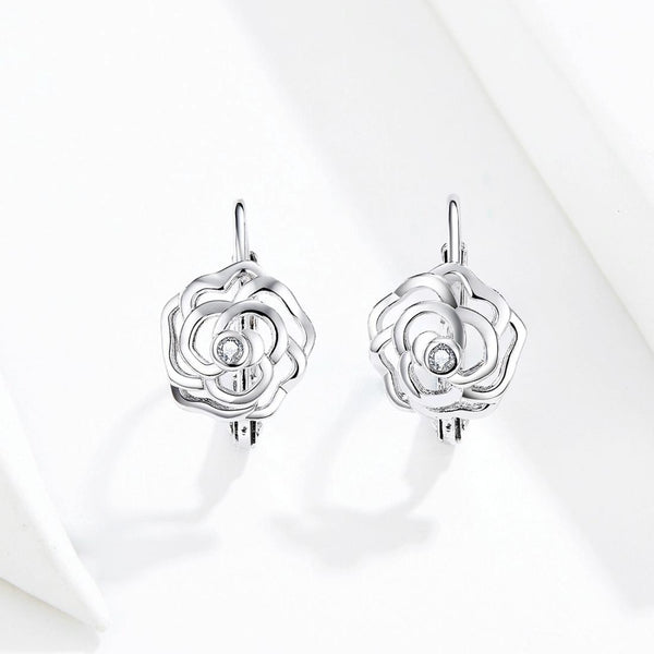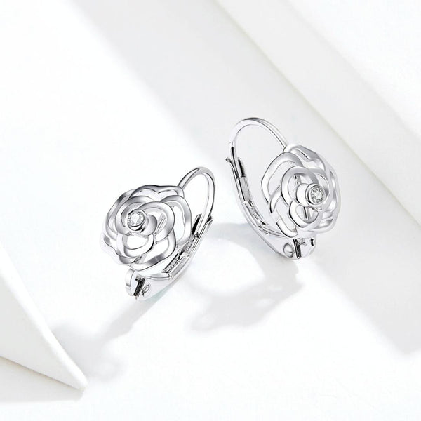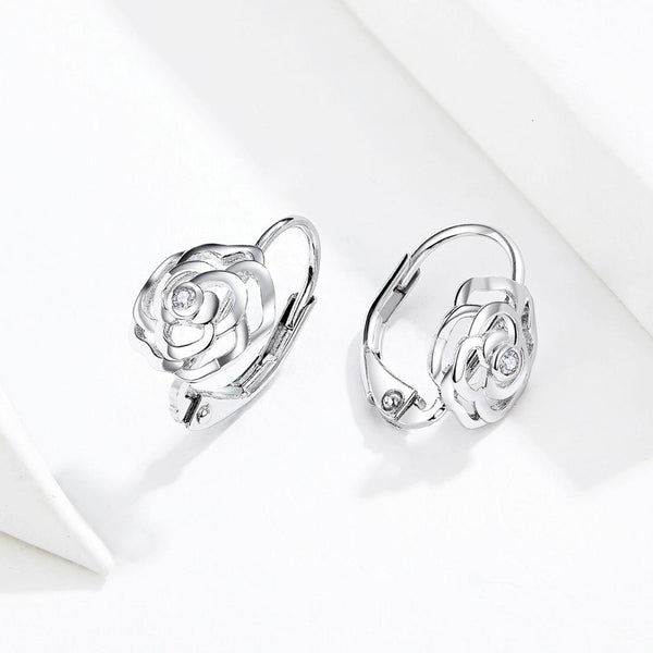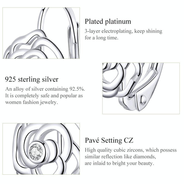 Rose Sterling Silver Platinum Plated Earrings Female Earrings