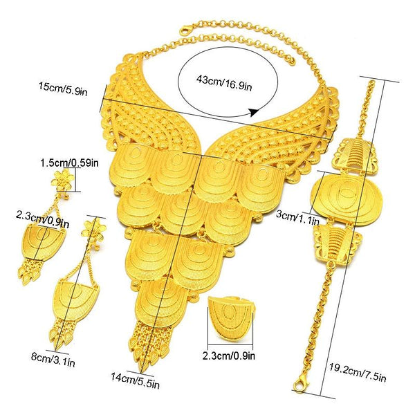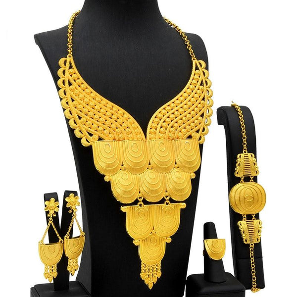 S-376 4 In 1 24K Gold Plated Bride Necklace Ear Ring Bracelet Suit Ladies Jewelry Set