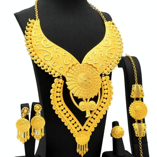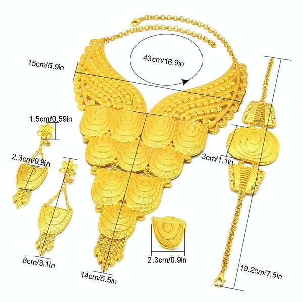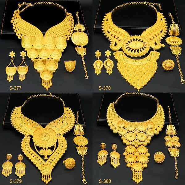 S-379 4 In 1 24K Gold Plated Bride Necklace Ear Ring Bracelet Suit Ladies Jewelry Set