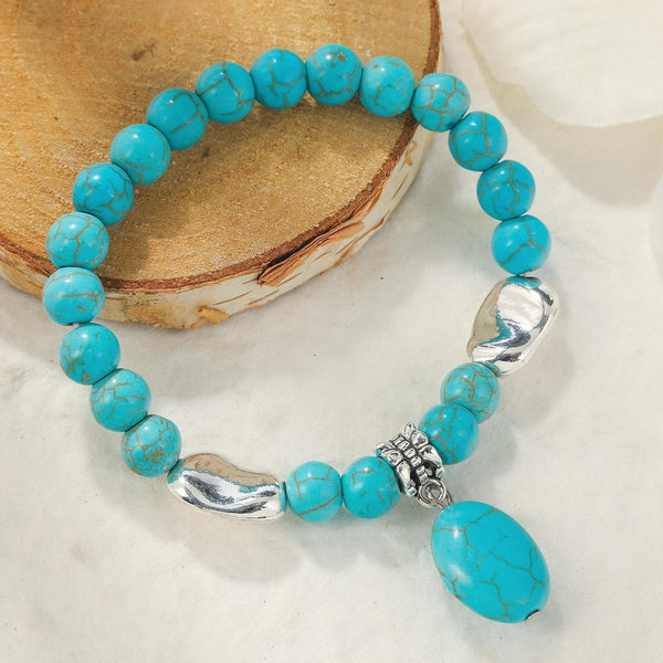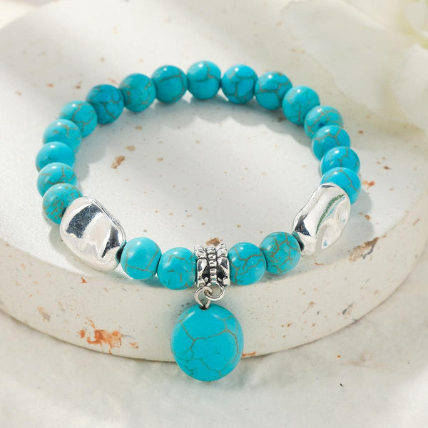 S2203-13 Turquoise Pendant Women Beaded Bracelet Turquoise Ethnic Style Charm Jewelry
