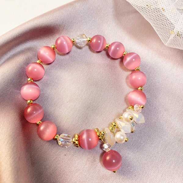 S2204-5 Pink Opal Crystal Beaded Bracelet Ladies Natural Crystal Bracelet