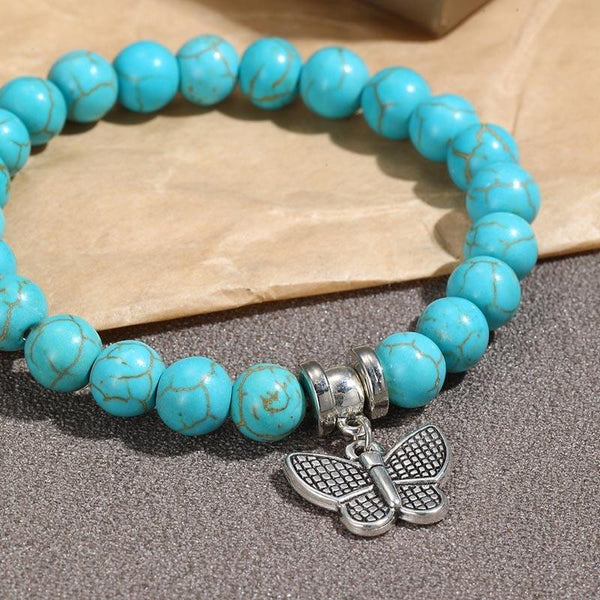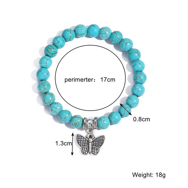 S2208-3 Butterfly Women Beaded Bracelet Turquoise Ethnic Style Charm Jewelry