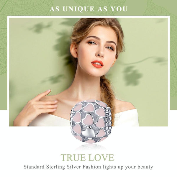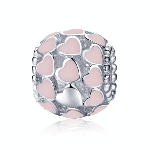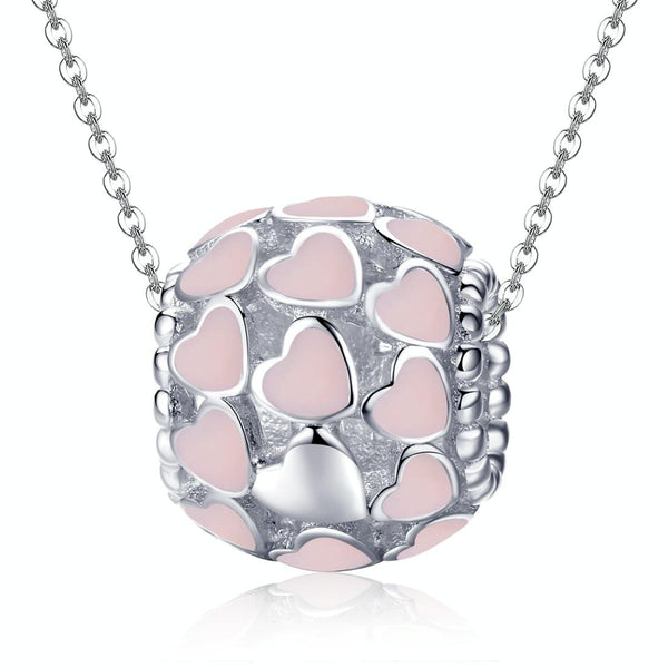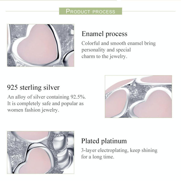S925 Pure Silver Pink Heart-shaped Diamond Beads