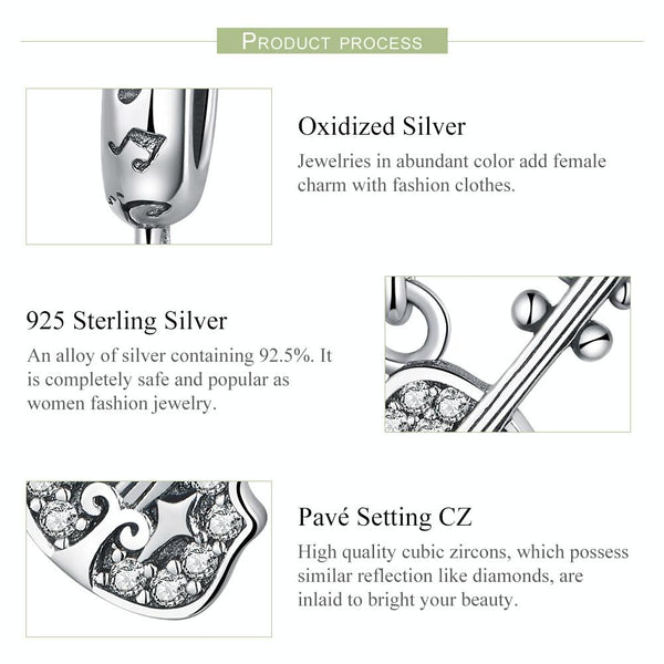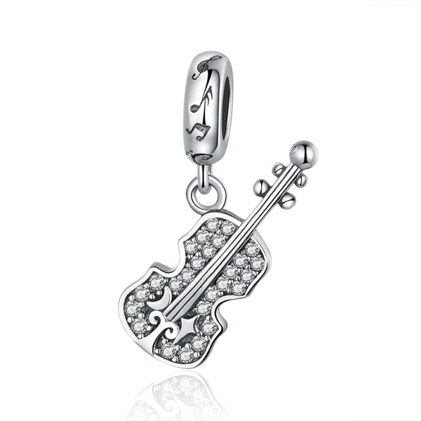 S925 Pure Silver Violin With Zircon DIY Pendant Accessories
