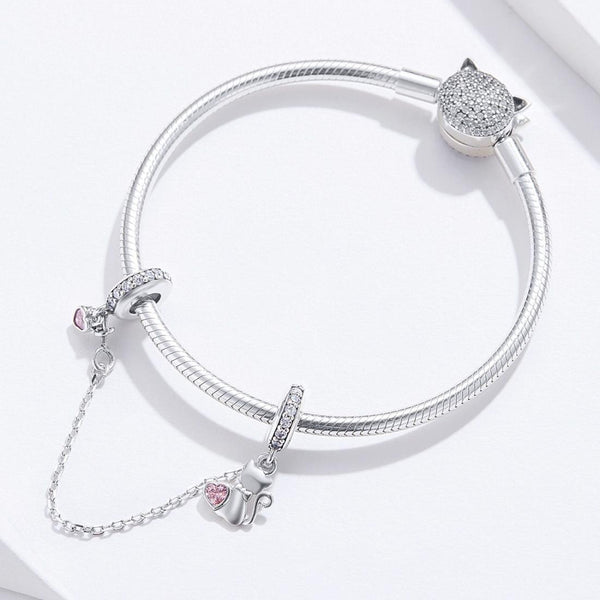 S925 Silver Cat Safety Chain DIY Bracelet Accessories
