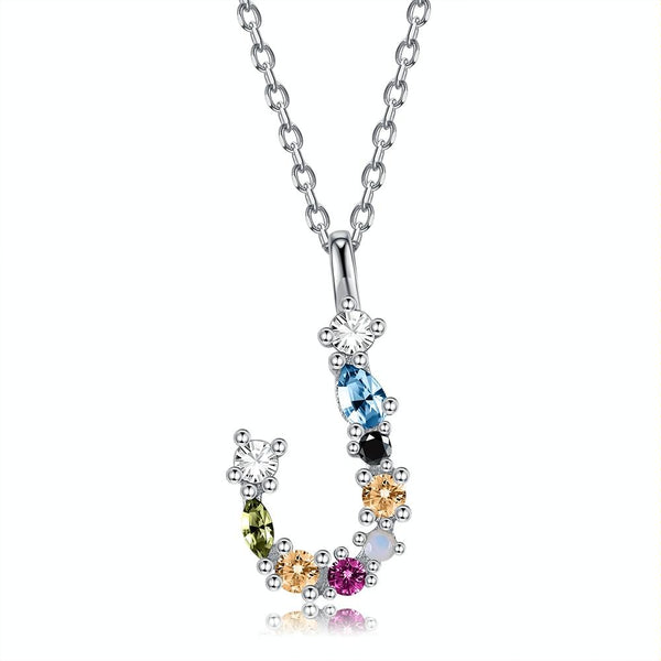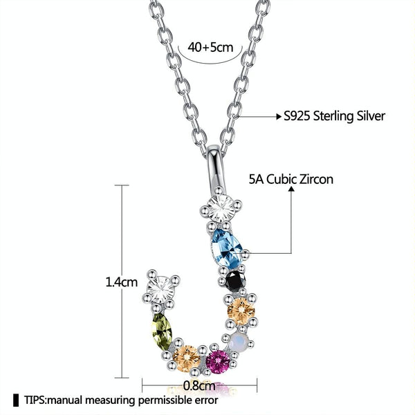 S925 Sterling Silver 26 Engligh Letters Colorful Zircon Women Nacklace Jewelry, Style:J(Silver)