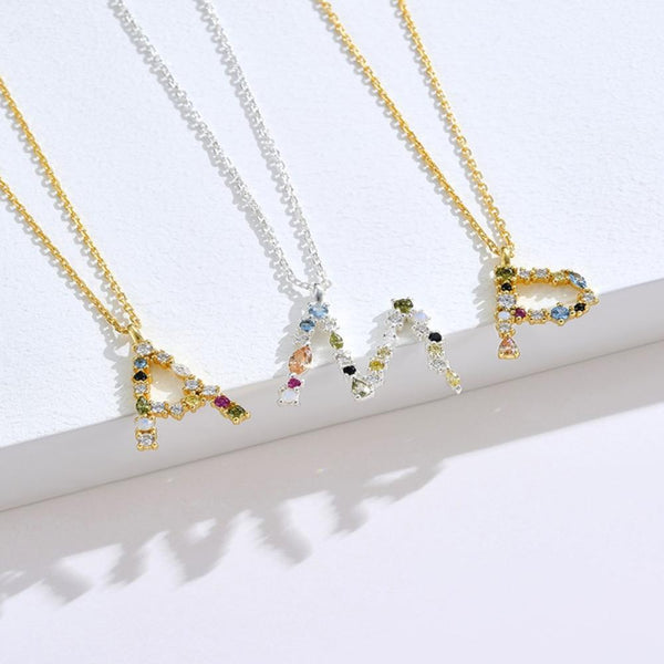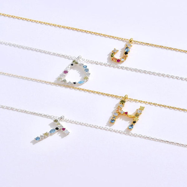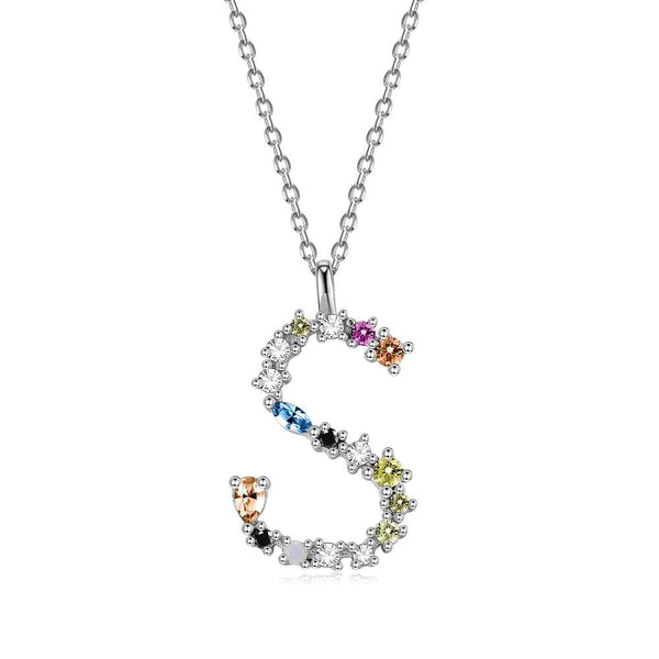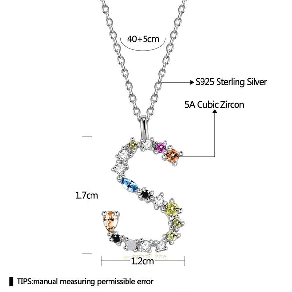 S925 Sterling Silver 26 Engligh Letters Colorful Zircon Women Nacklace Jewelry, Style:S(Silver)
