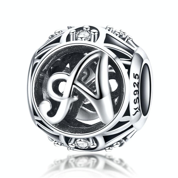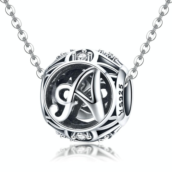 S925 Sterling Silver 26 English Letter Beads DIY Bracelet Necklace Accessories, Style:A